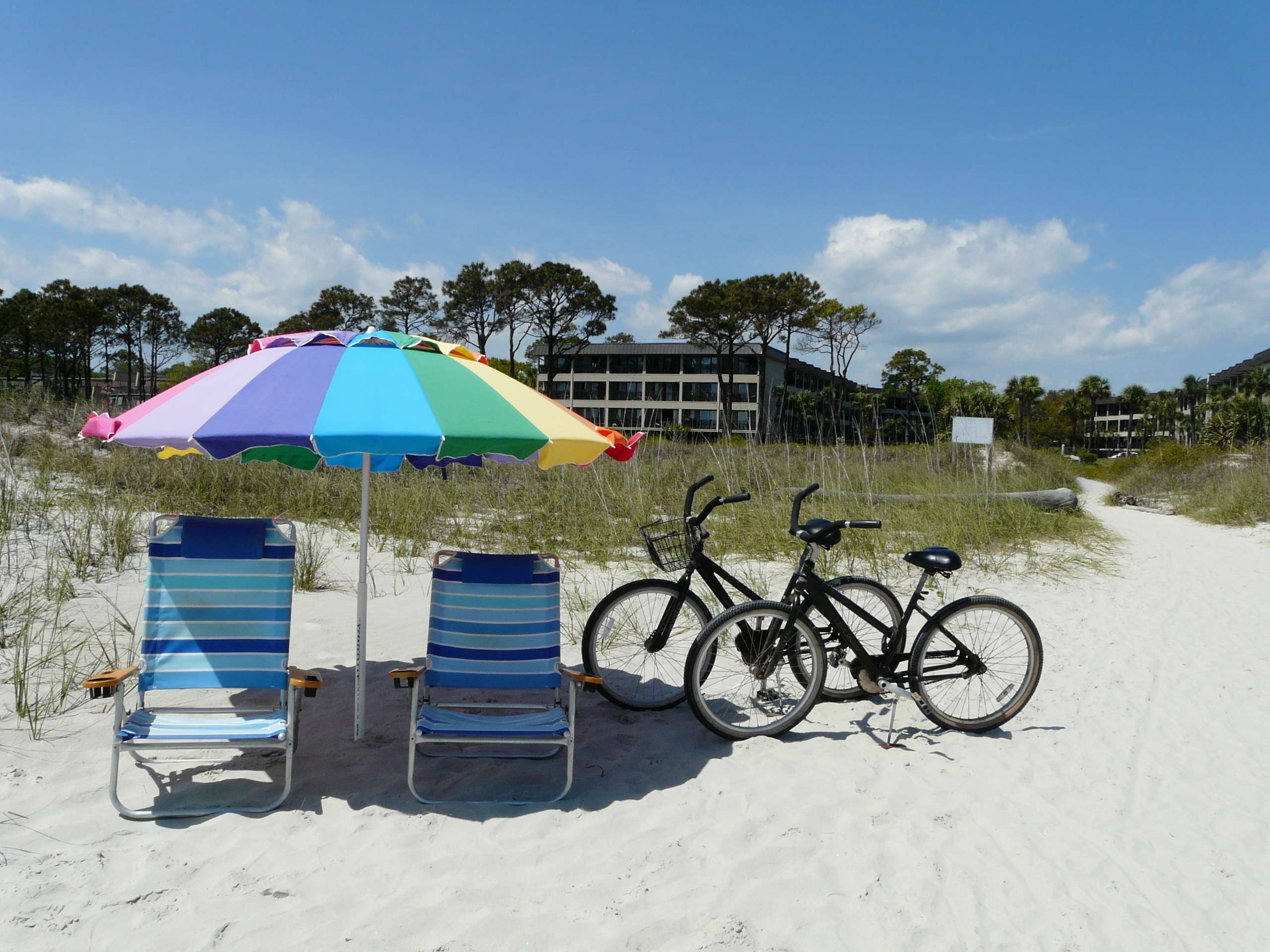 • Beach Bikes, Umbrella, and Chairs Included